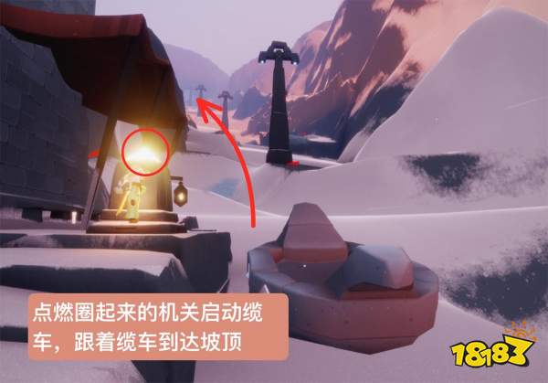 3、我们点燃缆车机关,到达山顶;