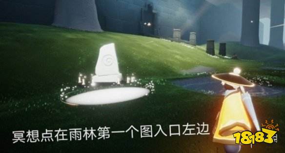 在雨林地图中,具体的冥想点位于雨林图一入口左侧(第一道门前)。