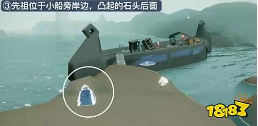 3、最后我们在凸起的石头后面,小船旁边即可找到笨拙水手先祖。