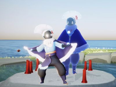 2、接着我们飞到飞行赛道右边的那个洞口,在入口处点燃复刻先祖。