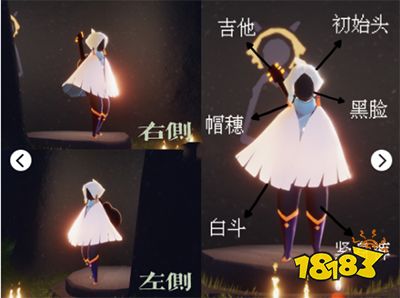 3、吉他+初始头+帽穗+黑脸+白斗篷+啵啵棉裤。(搭配白色斗篷也非常亮眼)