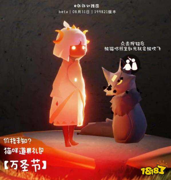 3、2022年爆料的万圣节新道具有一个猫猫头发型可以用蜡烛兑换获得,还有一个礼包的猫猫摆件,放在地上会弹开靠近的光之子;