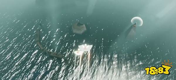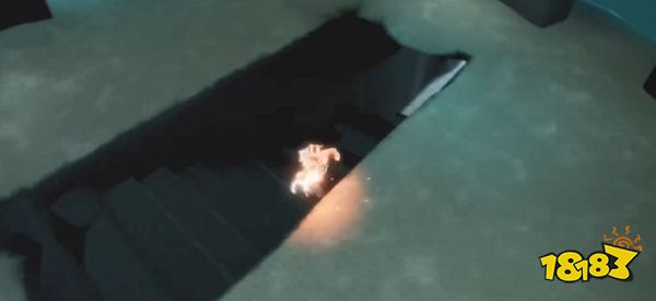 18、最后我们俯瞰水面,飞往下面的水下建筑,通过缺口潜入水下,通过下面楼梯往更深处潜行,在前面位置会有个比较小的洞口,穿过洞口即可找到第十八个小金人了。