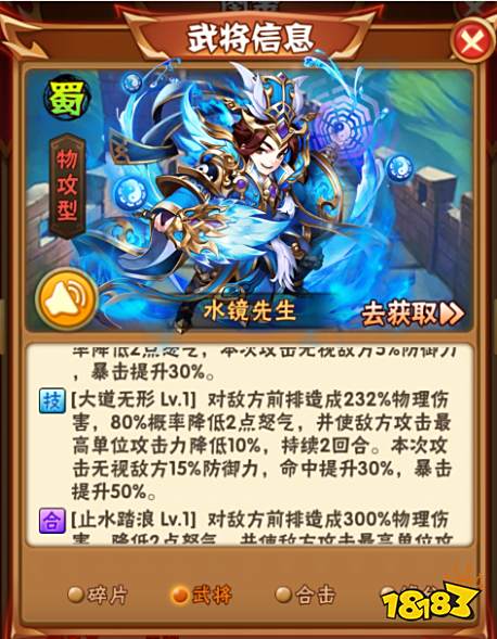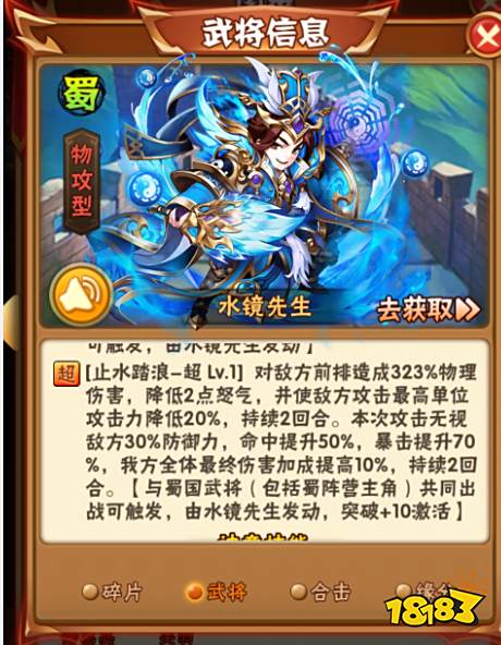更何况,水镜的突破技能是免伤,配合蜀国的黄月英、刘备等武将,加上木神等打持久战,配合自身的冰冻等……