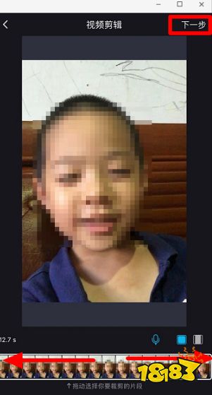 6、在视频轨道上,可左右拖动选择视频内容,完成后进入“下一步”。