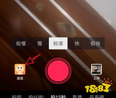 点击后在拍摄界面,选择左下方的道具图标。