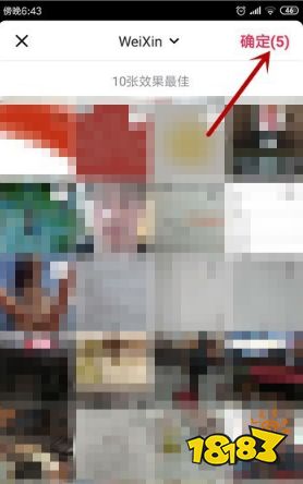 下载好模板后会打开手机相册,选择照片,这里最好选择十张最佳,选好后点击【确定】。