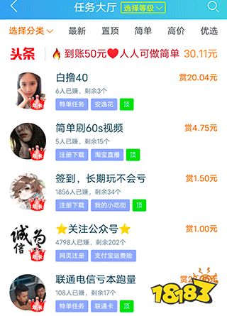 做任务的话建议从佣金低的开始,佣金低难度不那么大,一般1-2分钟即可完成一单,等你做的时间久了,熟悉掌握了一些做任务的技巧后再去挑战佣金高的,比如佣金在10元到30元之间的,这种一天做几个就有100元以上。