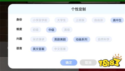 你可以根据自身情况制定适合自己的身份、难度、兴趣、语言。
