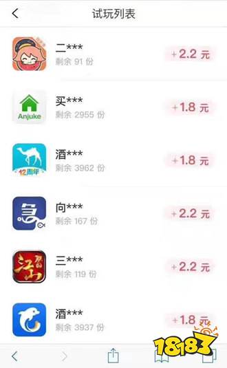 应用试客和钱咖是比较老牌的苹果试玩赚钱平台了,早在5、6年前就进入我们的视野,现在依然扛着手机赚钱的大旗,足可见这样的平台有多优秀。应用试客的任务虽然现在已经和几年前的2元时代说再见了,但依然还占据着平均水平,多数在0.8元-3元不等。一个任务3分钟,做完自动到账,一单一结,也是非常快捷。