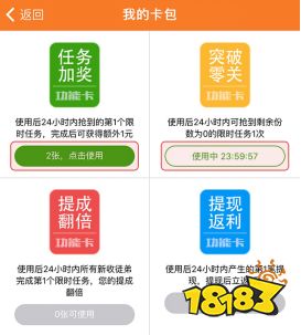 在玩苹果赚钱软件app软件的时候,大伙儿都需要做每日任务来赚钱,因此,如果你抽中【每日任务加奖卡】时,你点一下之后,24小时内抢得的第1个限时每日任务就能得到额外1元现金奖赏;