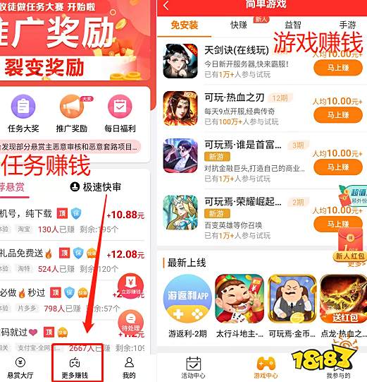 刚下载的的朋友可以到新人任务里面领取一下福利,然后再“更多挣钱”中去找游戏玩,当然在首页中有很多任务做,如果你想做任务就直接去做就行了,任务做完提交审核,通过就到账了,满1元即可申请提现,到账速度也很快。