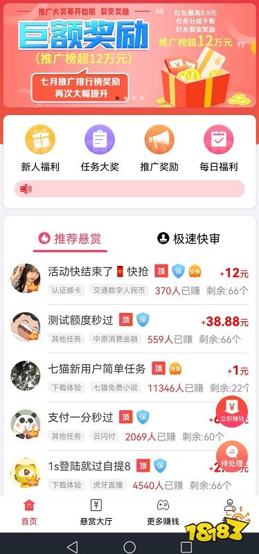 赏帮做任务一单一结,没有花里胡哨的东西,每单任务基本在好几元间,2022年重点操作软件就是它了,不仅做任务领赏金,还能玩游戏挣奖励,做任务、玩游戏都有排行奖励。那么收徒就更厉害了,我们主要以自身的需求去为自己带来收入,比如做10个5元任务,就是10元了。