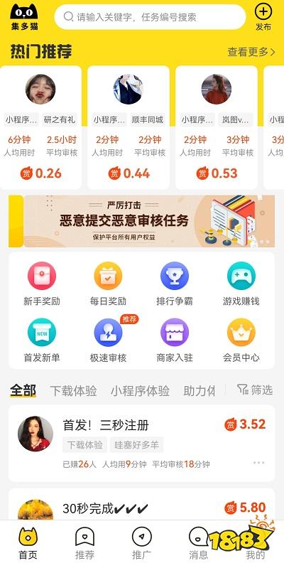 现在手机赚钱很流行的,大家如果想做兼职还是很容易的,只需要一款靠谱的手机赚钱软件,就可以兼职赚钱了。我推荐大家做集多猫这个兼职软件,该款软件主打手机做悬赏任务赚钱,里面有非常多的赚钱任务,一部手机就能做,做一单任务结算一单任务的钱,赚了钱满2元就能提现,很方便。