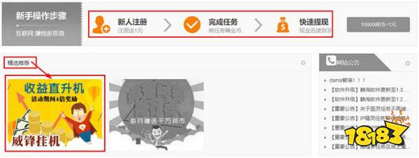 第二步:精选推荐栏目,点击这个推荐的挂机任务准没错。