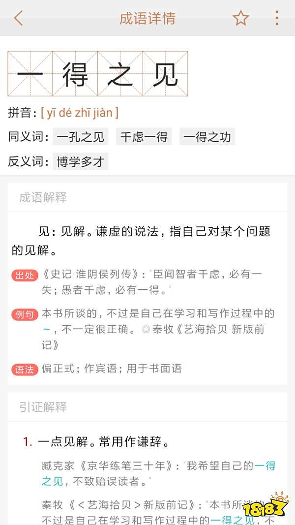 成语字典是快快查推出的一款正版授权、不收费、离线的汉语词典应用。收录成语近4万条,整合20本专业辞书,提供百万字详细释义。 成语词典受外研社正版授权,是当前收录完整,内容丰富,排版精美的成语词典。