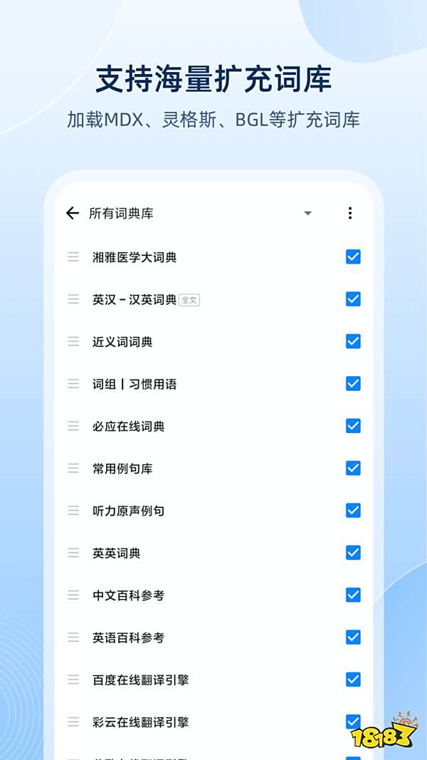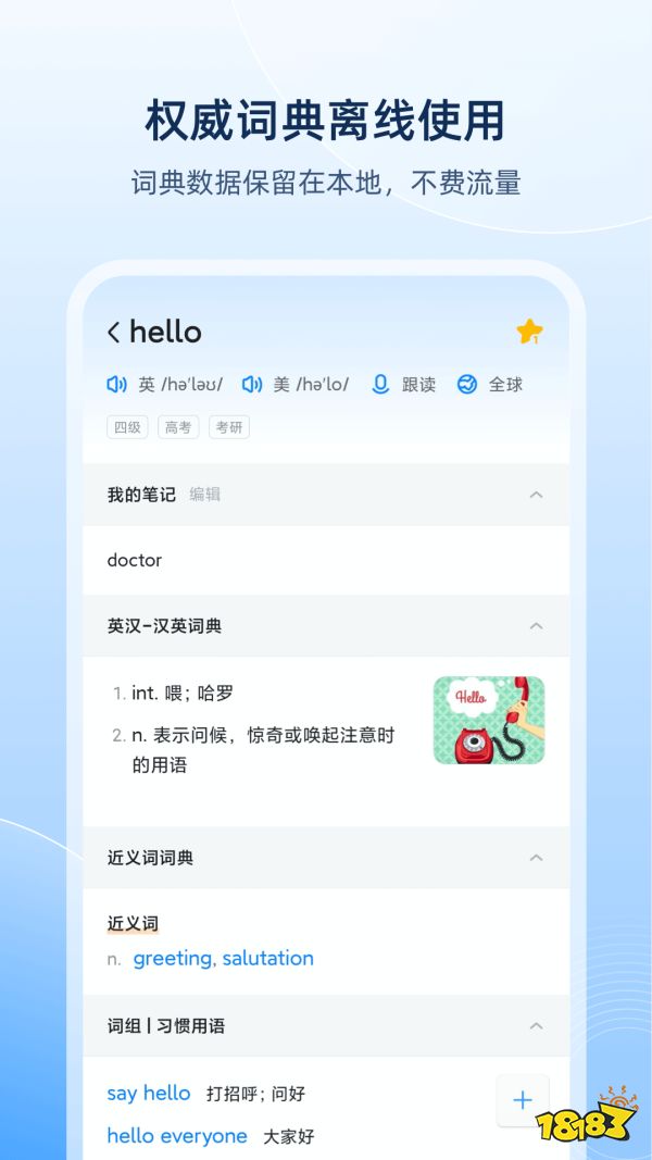 欧路词典是英语学习者的必备参考软件。启动快,功能全,无广告,免打扰;海量扩展词库,自定义编辑;支持中文、英语、日语、法语、德语等多语种翻译。 学习、翻译、笔记、考试,全面覆盖语言学习的所有场景。