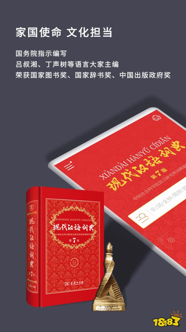《现代汉语词典》是新中国第一部规范型语文词典,是现代汉语普通话语音规范、汉字规范和词汇规范的主要参考工具书,被誉为汉语辞书史上的一座丰碑。