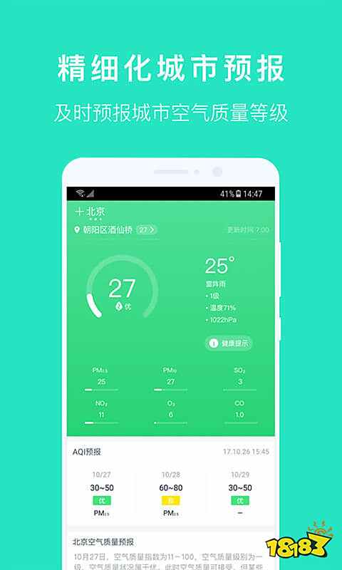 空气卫士是朗空超级空气净化器的配套App,支持查看不同城市天气,空气污染指数,空气质量排名。