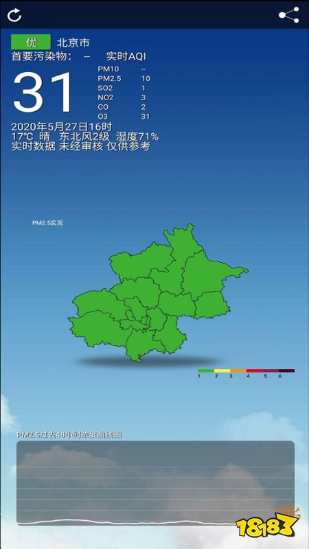 明普空气是为用户提供空气质量状态的一款应用,包括城市空气质量排名,站点排名以及日数据、年数据、分时数据等等