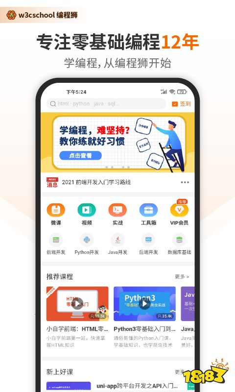 Java编程狮是W3Cschool编程狮旗下专门为零基础Java编程爱好者打造的一款入门工具App,致力于帮助初学者入门,轻松迈入编程领域。学Java,从这里开始!