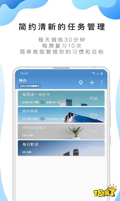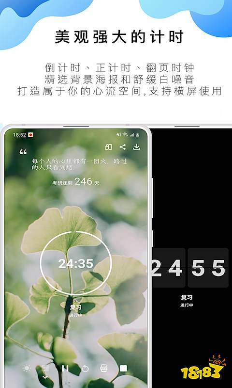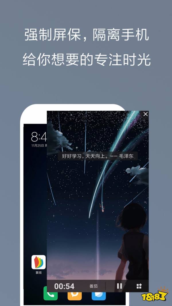 强力屏保帮你排除其他App的干扰,静心专注学习提升自我。