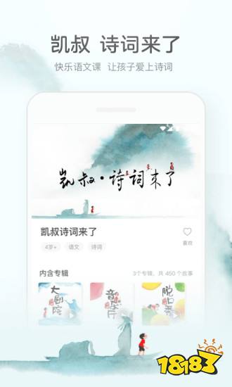 3000万家庭推荐,孩子听故事、学知识的必备APP。听凯叔讲故事,让更多孩子拥有幸福的童年!专为孩子定制改编,精雕细琢每个故事,孩子爱听,家长放心。叫早、哄睡、随心听,根据你的爱好智能推荐。帮助孩子快乐学习,提升思维方式,让学习效率翻倍。