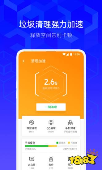 进入下载 2、猎豹清理大师深度清理、微信、QQ、抖音、快手缓存垃圾,释放手机空间10G+,手机垃圾清理,病毒查杀,免费WIFI,游戏加速,超强省电必备神器,一键优化拒绝卡顿,全球超过30亿人使用的手机清理软件。手机卡到爆,空间不够用,马上用猎豹清理大师!