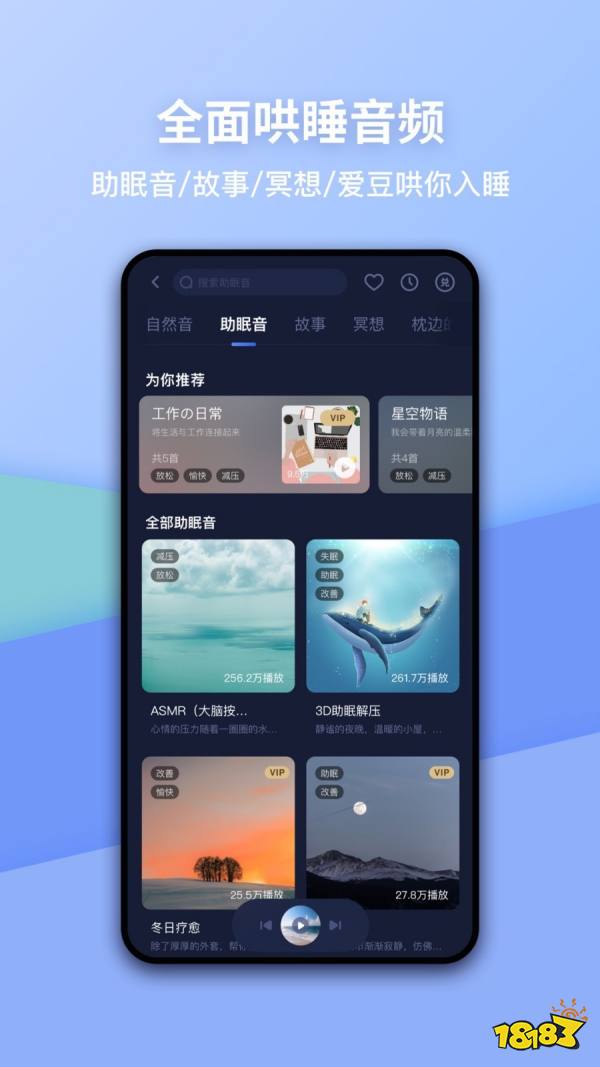 轻松睡眠专注当下减压放松新方式,用自然之声、轻音乐、睡前故事、冥想等方式改善你的睡眠、调节情绪、缓解焦虑与压力