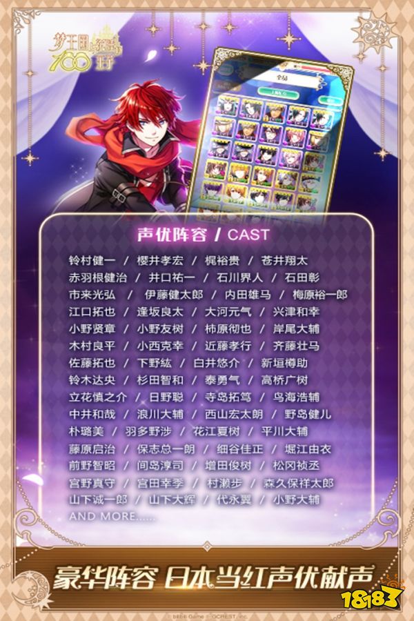 唤醒沉睡中的梦王子——《梦王国与沉睡的100王子》(简称《梦100》)是国内首款乙女向恋爱手游,超豪华级声优阵容,百位王子供你选择,恋爱剧情心动不已。