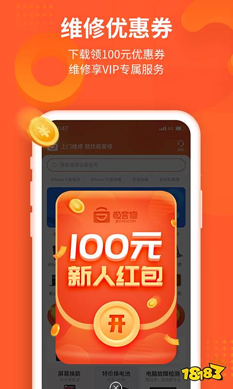 【APP专享】下载APP领100元优惠,维修享专属客服VIP服务。 极客修同城上门维修服务专家;手机维修,电脑维修,家电维修,家电清洗,管道疏通,水电维修,防水补漏等服务。