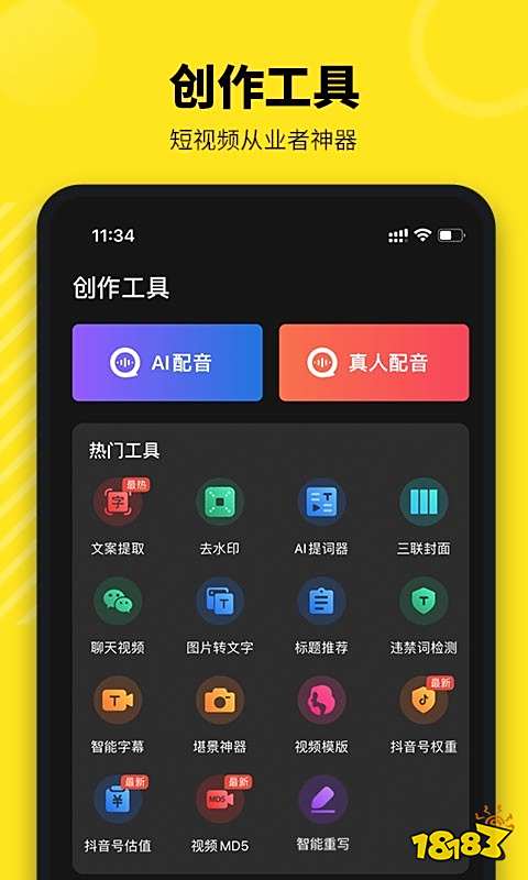 创作工具:配音服务、AI提词器、视频文案提取、视频上字幕、图片转文字、三联封面制作、去除短视频水印等