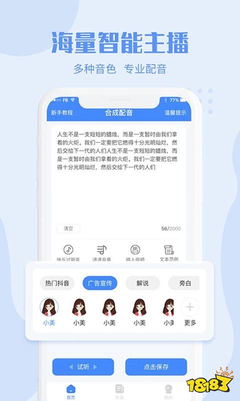 不知道大家是否有过这么一个心愿,自己能够站上舞台,当一个演员,尽情演绎作品,在幕后为自己的角色进行配音,或许当一个演员过于难,但是配音可不难,今天小编为大家介绍的是配音赚钱的软件,可以给广告、小说、影视剧等等进行配音,非常自由,让自己的声音演绎一部作品,不仅如此,配音还可以赚钱哦,佣金结算及时,一起来看看吧。