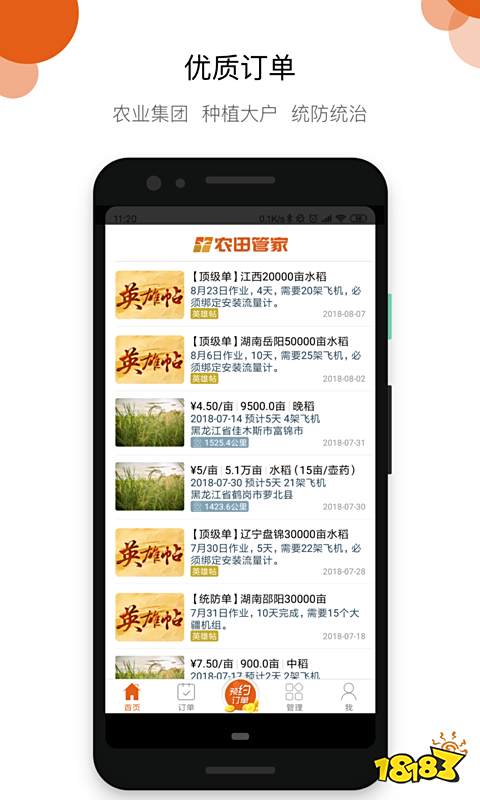 我们为农田管家飞手端飞防植保服务组织及飞手个人提供更简单方便接植保订单,更接地气的飞防相关知识信息,更便捷的飞防组织管理工具等专业的服务。