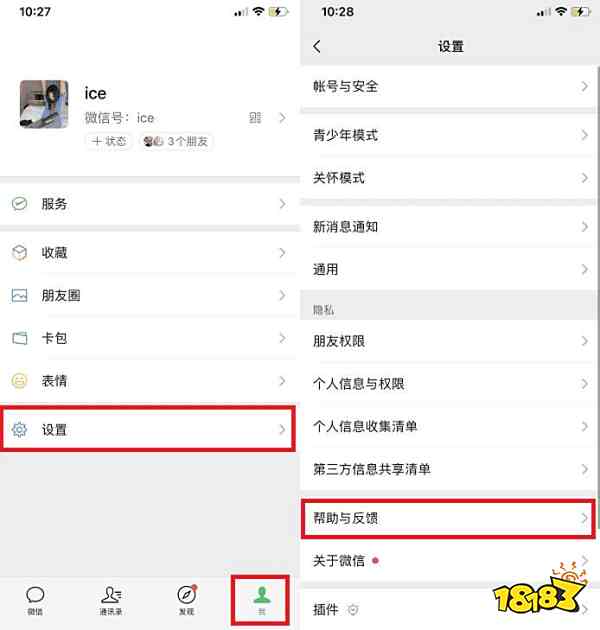 步骤一:重装手机微信后,点击底部的【我】,找到【设置】,点击进去以后,找到并点击【帮助与反馈】。