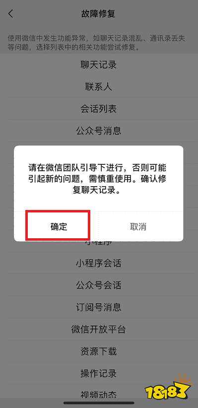 步骤三:点击确认按钮。(请在微信团队引导下使用,否则可能会引起新的问题)。