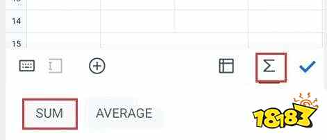 2、然后双击单元格,在手机屏幕下方找到工具栏,点击工具栏中如图所示的“∑”按钮,再点“SUM”按钮。