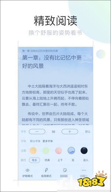 精致排版、护眼模式、极简模式、亮度自适应、多样独特的阅读页主题,每一个阅读姿势都舒服