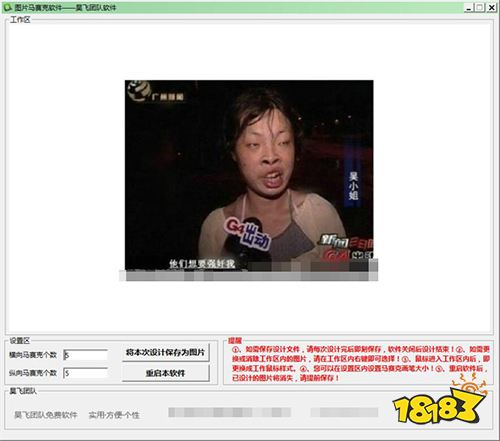 昊飞图片马赛克软件能够直接处理,也可调整画笔大小,在工作区内,本软件还自动关变成工作笔鼠标模式,更有意见保存和重启软件模式!保存图片为当前流行的jpg格式,更加方便!