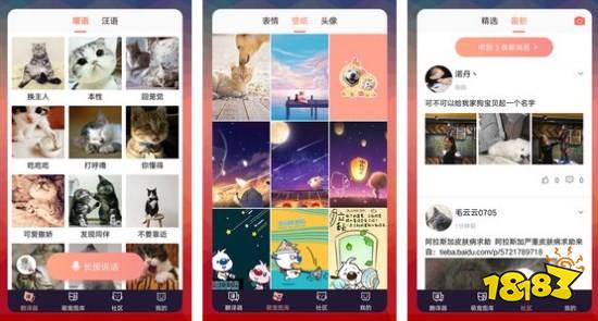 专为铲屎官准备的和猫猫交流的工具,提供数十种猫语,非常有趣的人猫交流器。除了猫语也提供狗语,还有表情、壁纸、头像等额外的贴心服务,让人和猫狗变得更亲近,交流无压力。