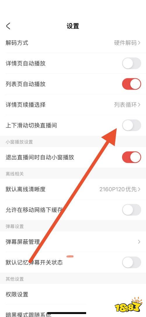 第三步,勾选【上下滑动切换直播间】关闭,保存设置即可。