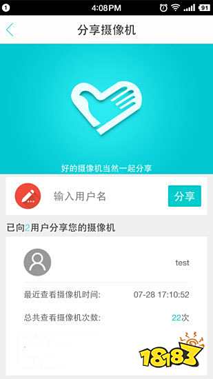 不光设备可以分享给其他用户查看直播画面,抓拍照片也可以通过微博、QQ的方式分享给好友。