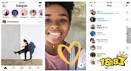 利用 Instagram Direct,将动态中看到的精彩照片和视频(以即阅消息的方式)、消息和帖子发送给群聊成员和好友分享。