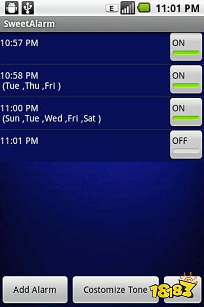甜蜜闹钟讲给你的一天一个甜蜜的开始,它可以使用你最爱的TA的声音来叫你起床,你最多可以使用六种声音来作为提醒,另外你还可以设置特定时间或者特定周期的闹钟,将最合适的声音出现在最合适的时间。