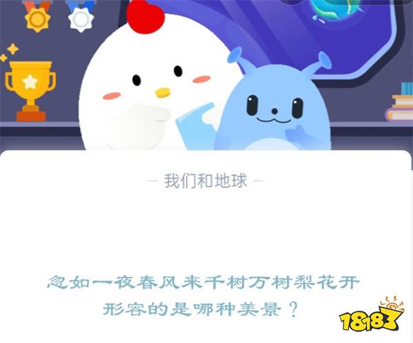 忽如一夜春风来千树万树梨花开形容的是哪种美景?支付宝蚂蚁庄园12月12日答案