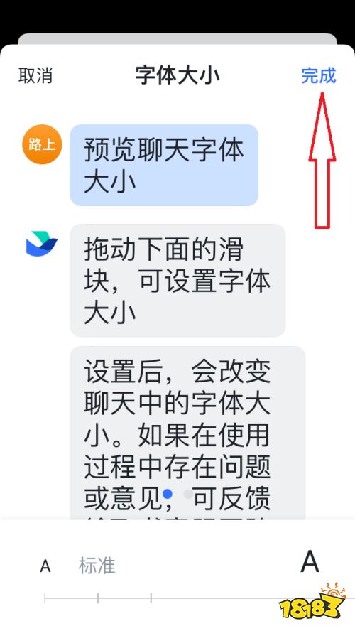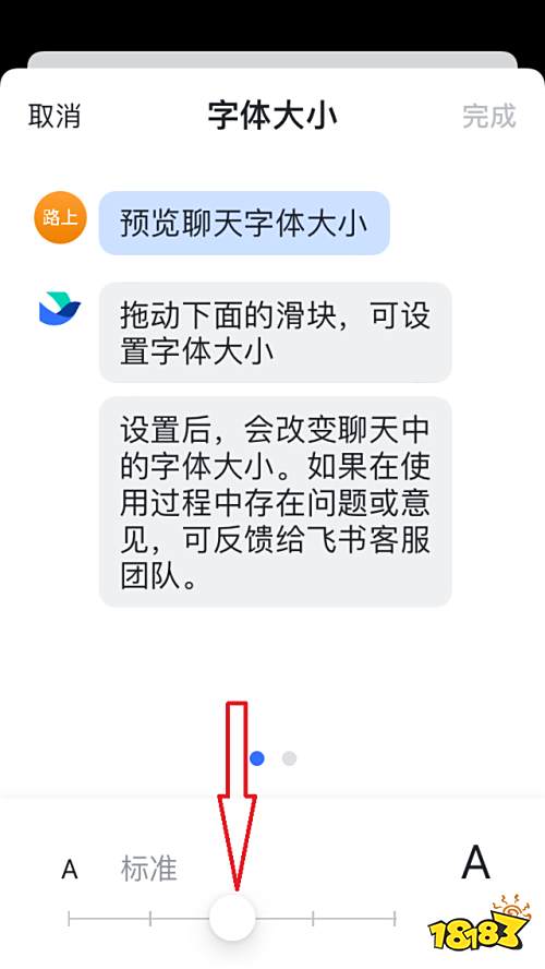 3、接着左右移动以下位置处的滑块调整飞书字体大小。