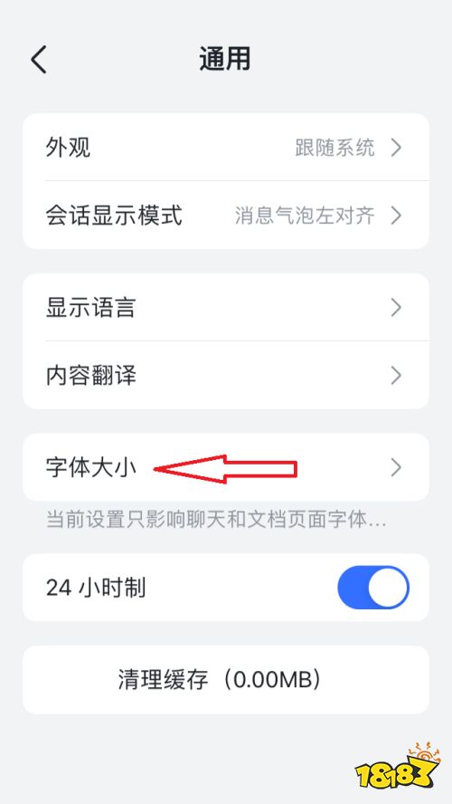 2、然后进入到飞书通用设置中,点击【字体大小】。