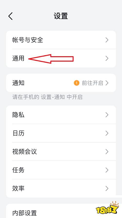 1、首先在手机飞书设置页面,找到并点击【通用】。