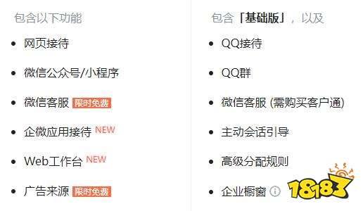 3、标准版相比基础版增加了qq群、qq接待、企业橱窗、客户防漏、主动会话引导等功能。