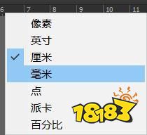 3、在参考线图标下方鼠标右键,选择“毫米”